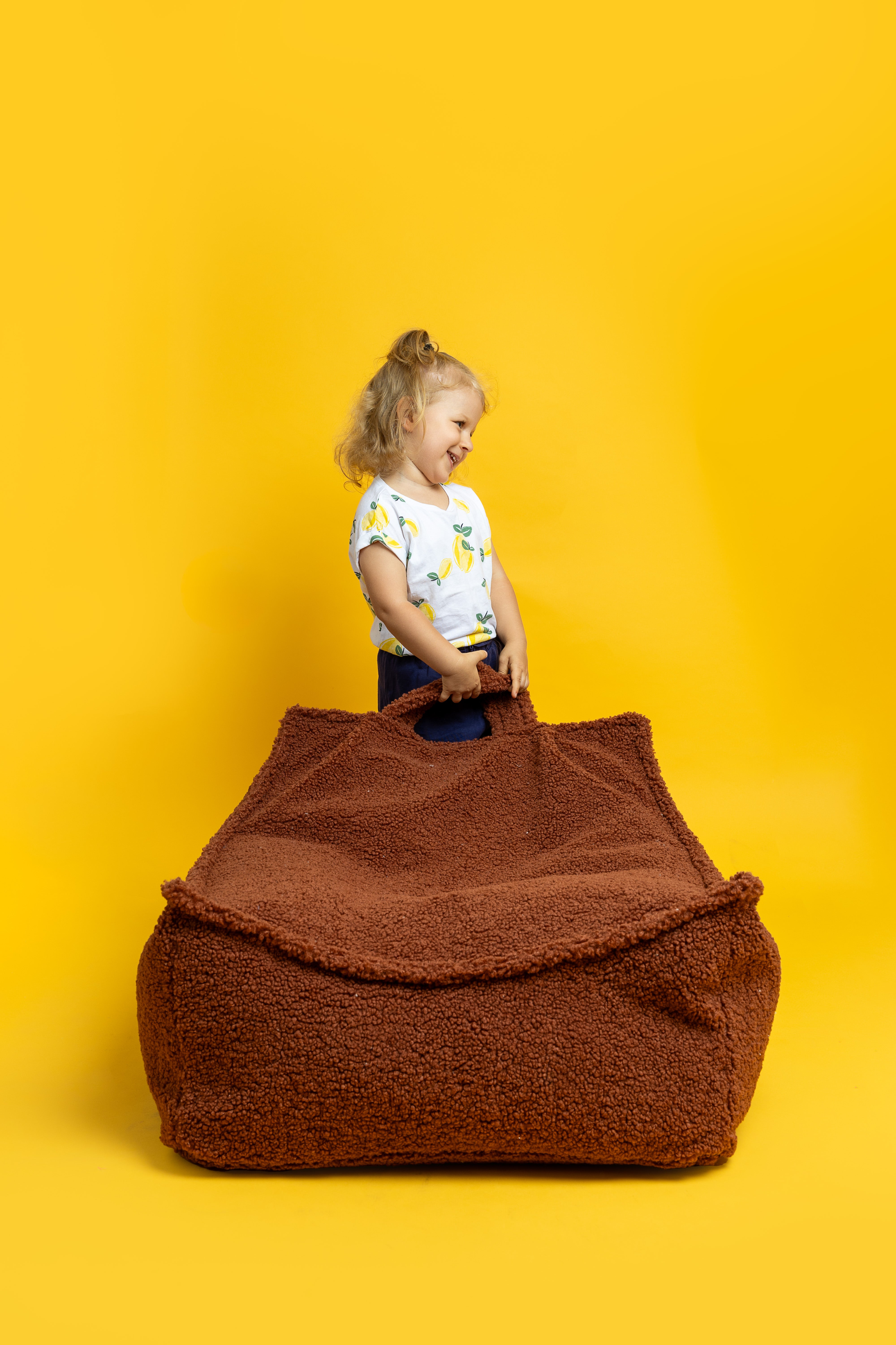 Estetiškas Velvetinis Sėdmaišis Vaikams "SAKO" TEDDY Rudos Spalvos