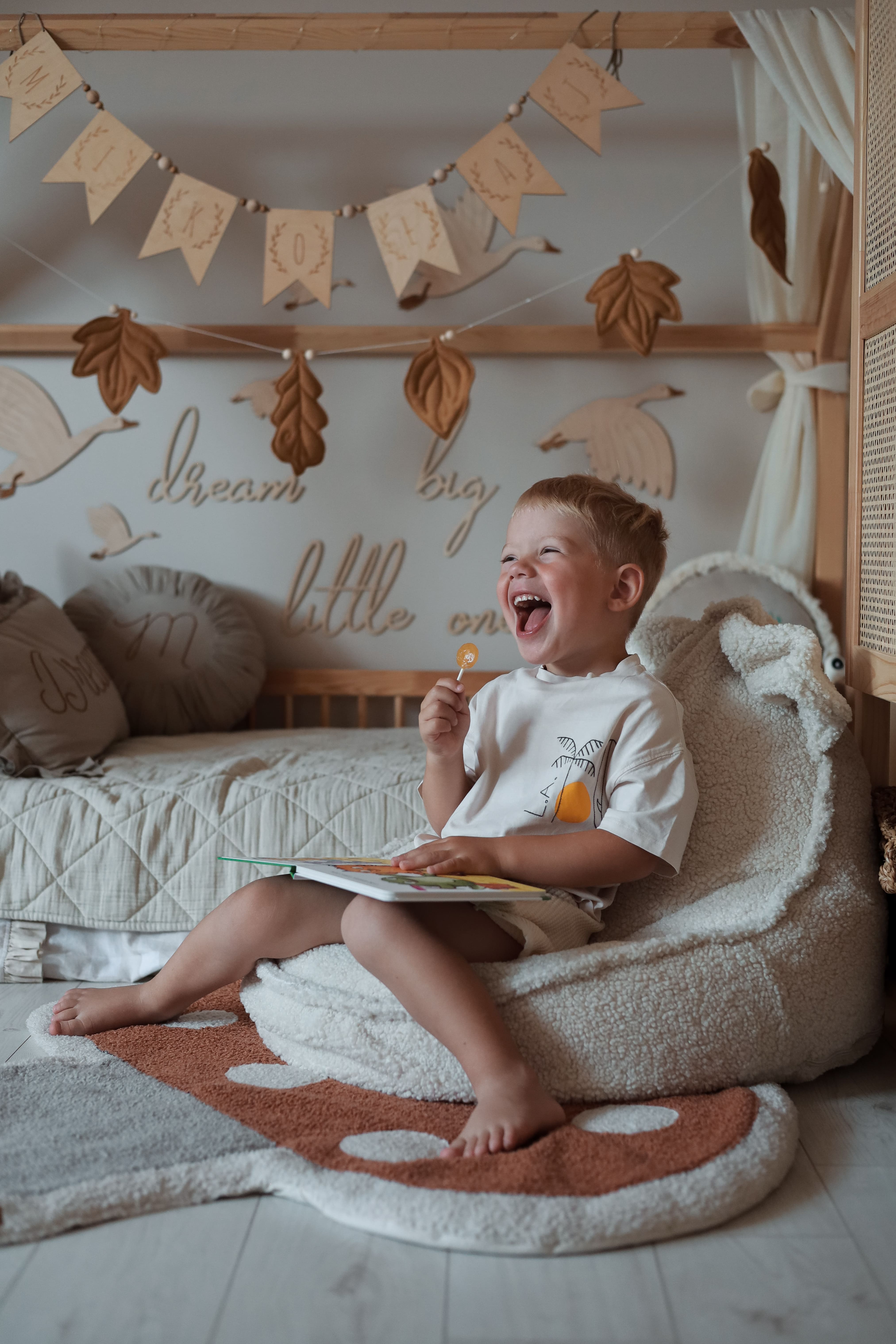 Ergonomiškos ir jaukios minkštos kėdės ir gultai, pritaikyta vaikų poilsiui, skaitymui ir žaidimams. Lengvai prižiūrima ir stilinga – puikus priedas vaikų kambariui!